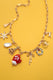 Charm necklace featuring a blend of Christmas symbols, including a Christmas tree, ornament, mitten, reindeer, and a snowflake.