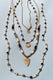 4 layer long necklace. Has seed beads. gold chains and gold charms. Includes a lobster claw closure and 2" extender.