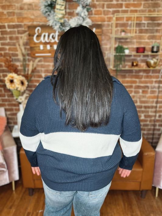 WB Half-Zip Navy Color Block Sweater